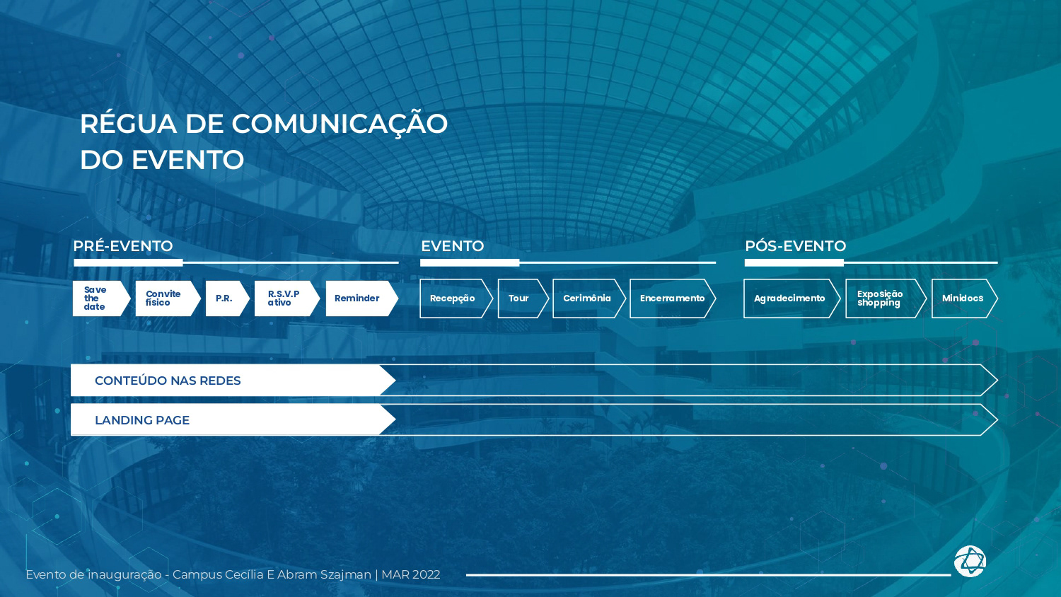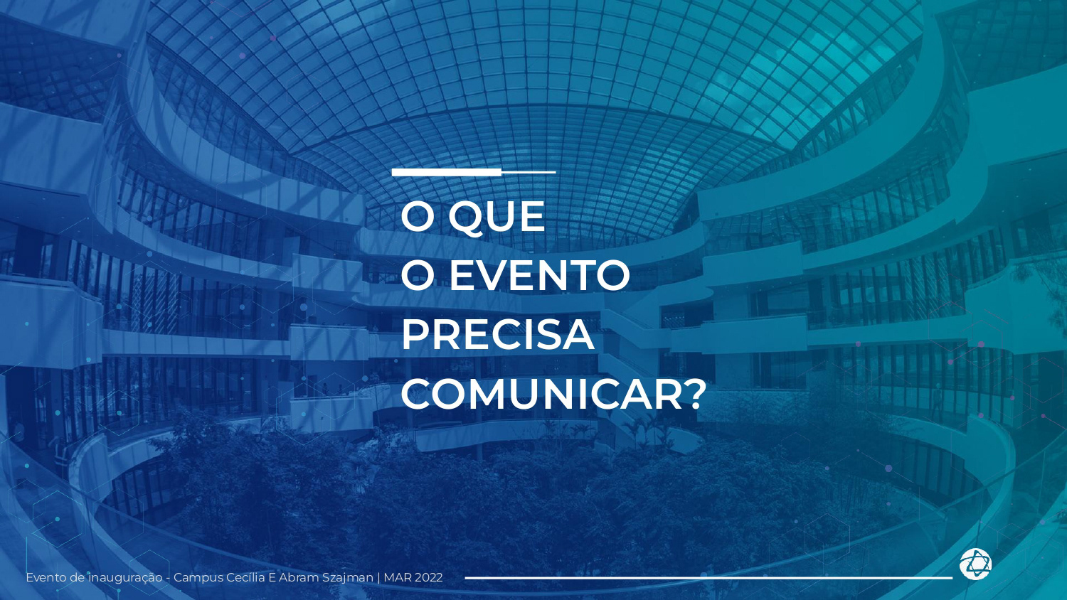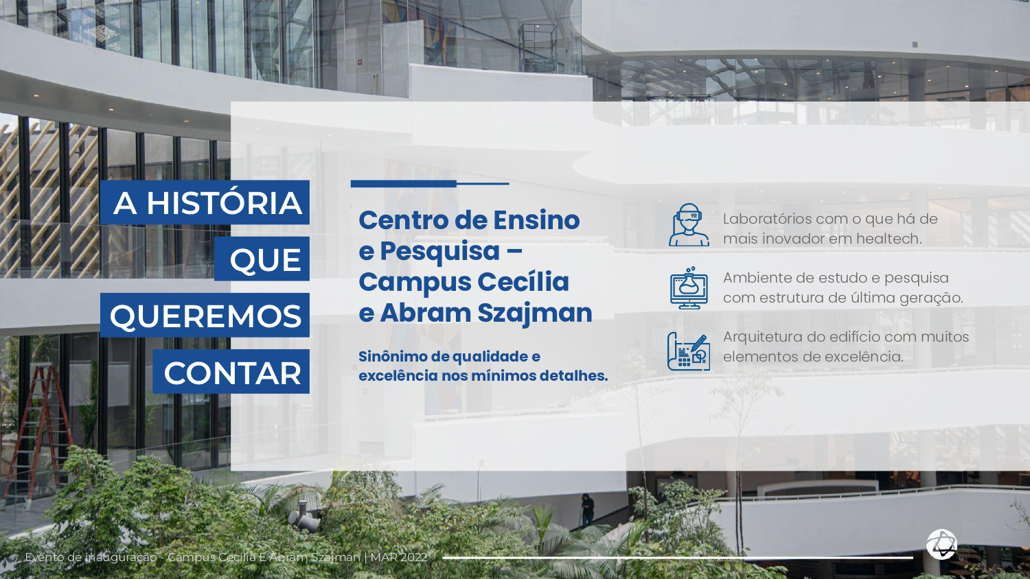 Elaboração e organização de evento de inauguração do novo Centro de Ensino e Pesquisa – Campus Cecília e Abram Szajman em São Paulo.
