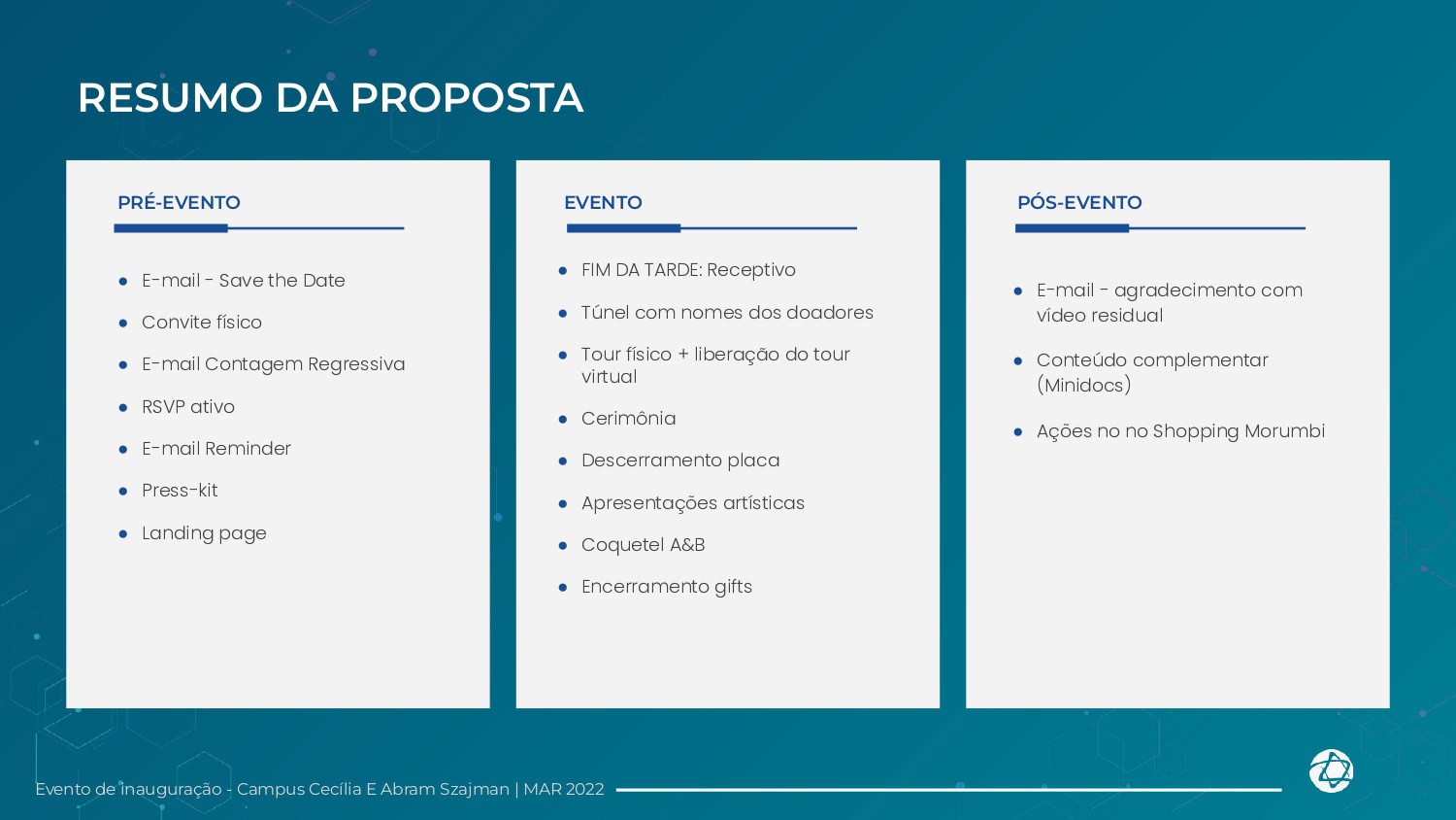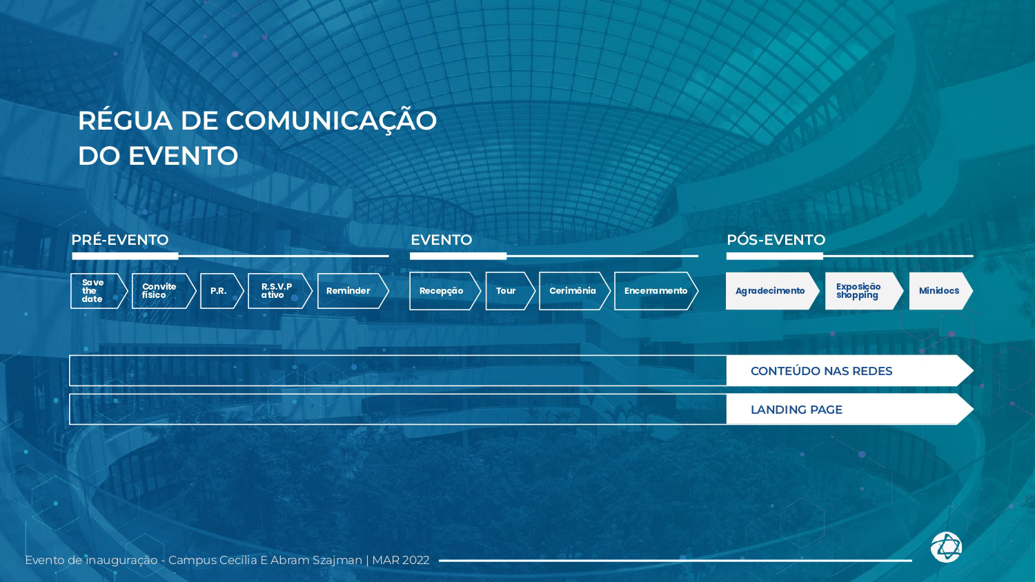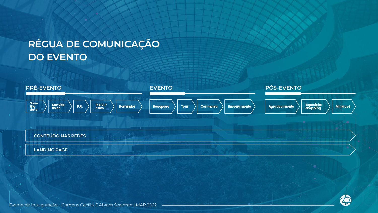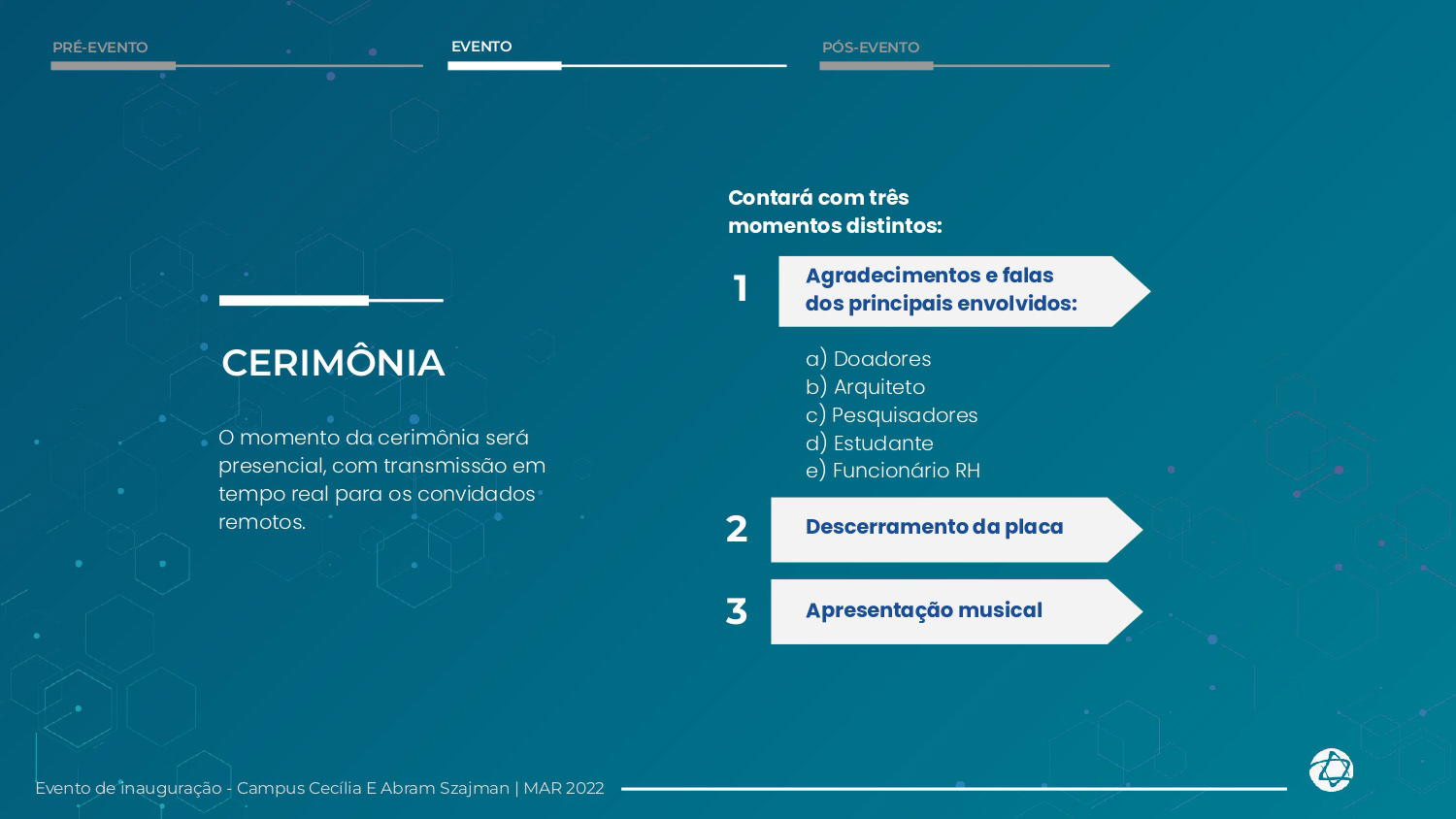 Elaboração e organização de evento de inauguração do novo Centro de Ensino e Pesquisa – Campus Cecília e Abram Szajman em São Paulo.