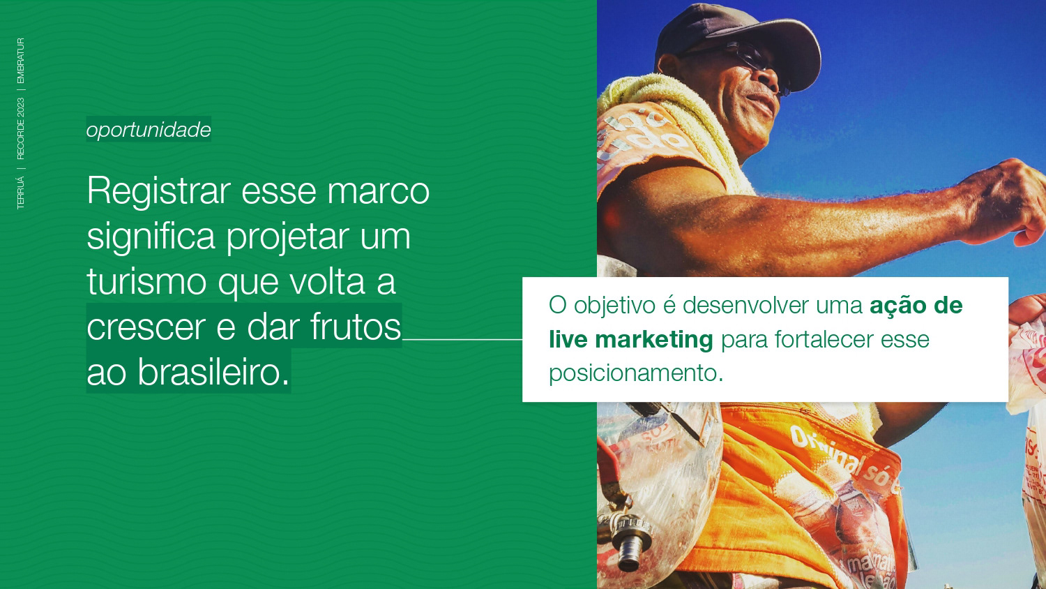 O Brasil bateu o recorde em receitas no setor de turismo internacional em 2023. Nosso desafio foi criar uma ativação para chamar a atenção e celebrar esse marco histórico da retomada do turismo estrangeiro no Brasil.