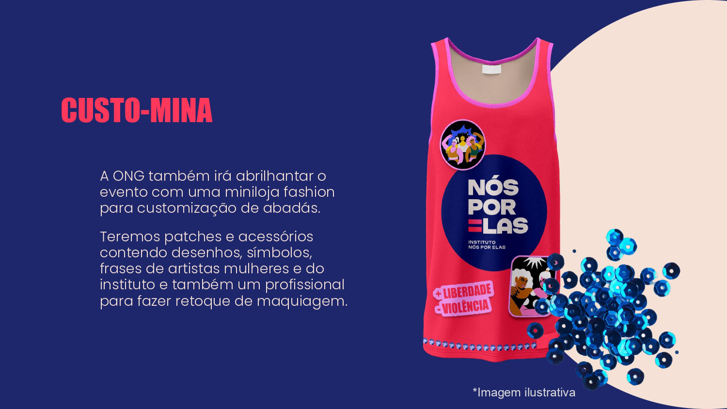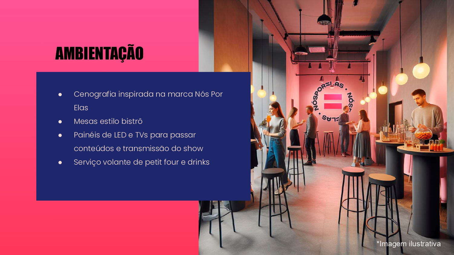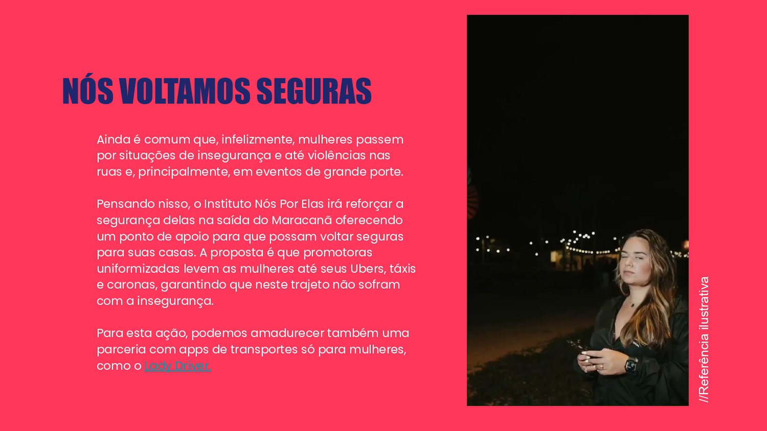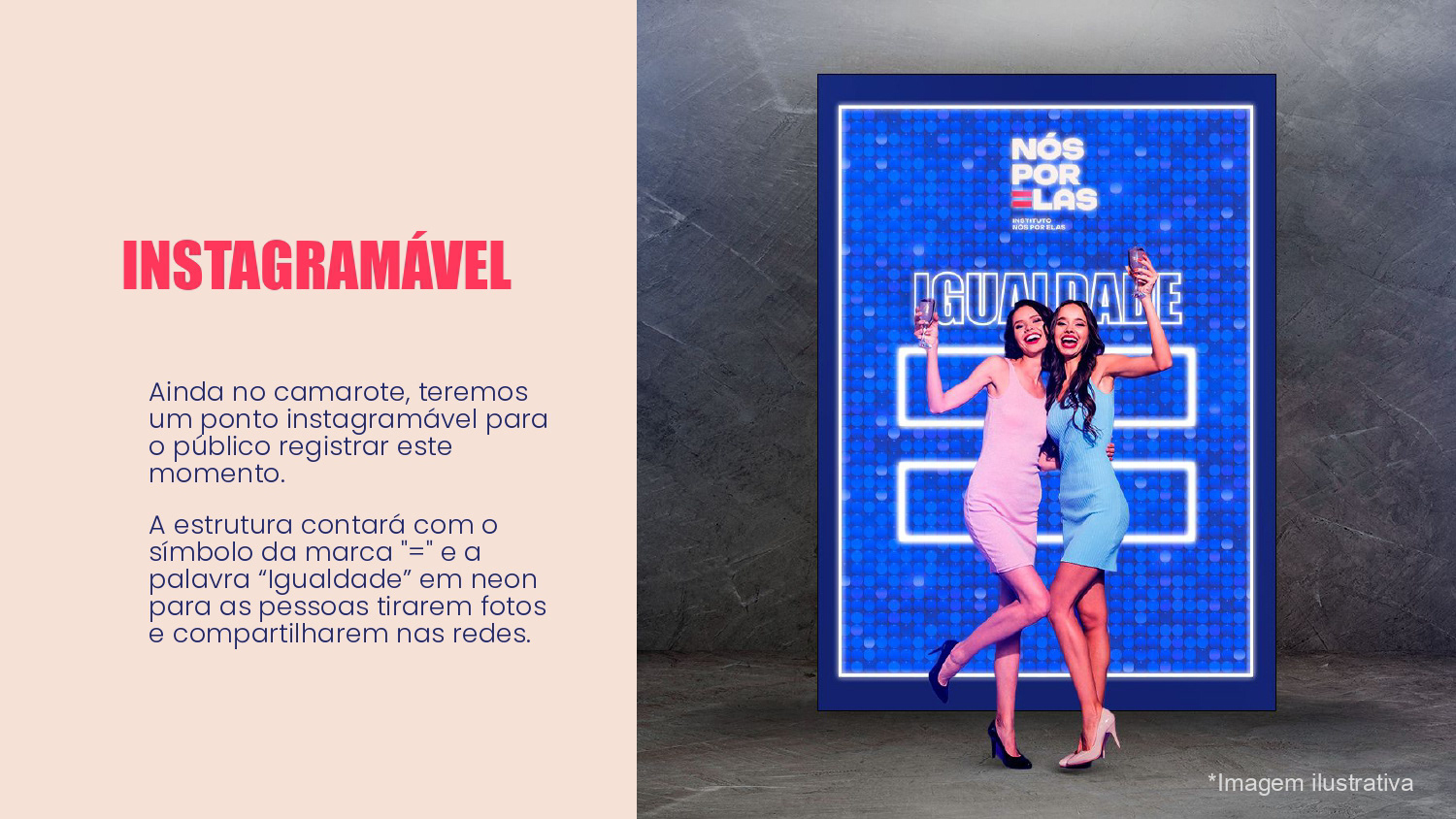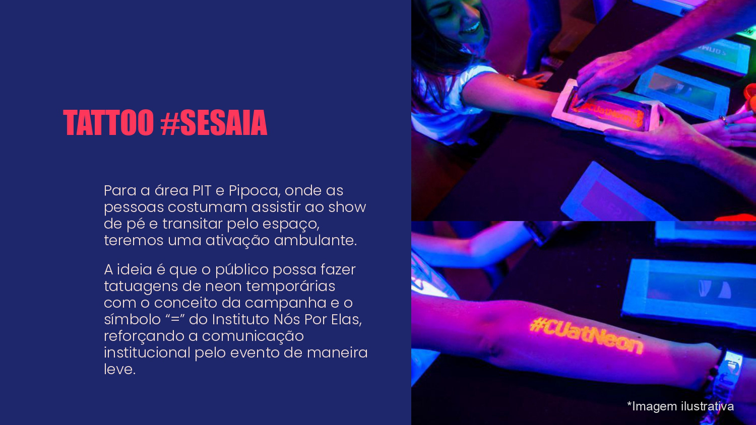 Proposta de ações de Brand Experience para a ONG Nós Por Elas no show de turnê Ivete 3.0. O propósito do projeto foi gerar awareness para a marca e divulgar a causa de apoio às mulheres no evento.